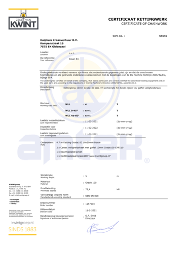 Wordt gebruikt voor eerste keuring, leeg laten indien geen keuring gewenst